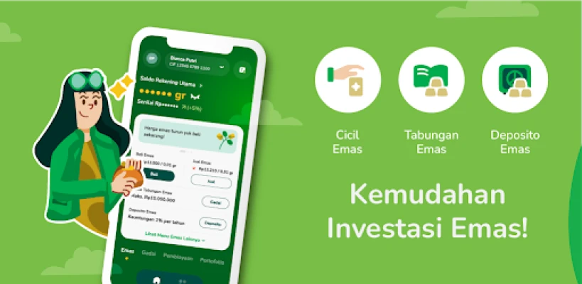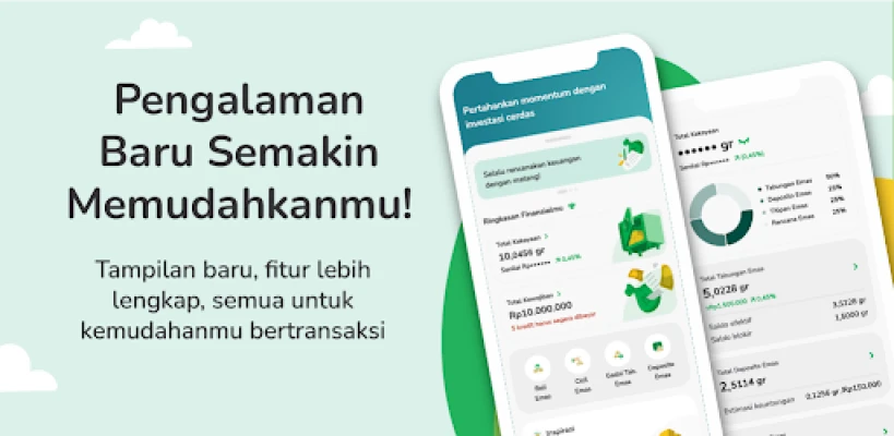 Gadai чрез Tring! ви отваря врати и към света на инвестициите в злато. Започнете да натрупвате състояние с нашата функция „Разсрочено злато на кюлчета" – инвестирайте в 24-каратово злато от 0.5 до 25 грама с първоначална вноска от само 15% и срокове от 3 до 36 месеца, при месечна надбавка от 0.92%. А със „Златни спестявания" можете лесно да купувате, продавате, прехвърляте и дори физически да отпечатвате злато, започвайки от Rp10.000 или 0.01 грама, срещу годишна такса за обслужване от Rp30.000. При спешни нужди, използвайте „Златни спестявания под залог" – възползвайте се от средства срещу вашето злато за срок от 120 дни до 36 месеца, с такса от 0.75% на 15 дни и максимална годишна такса от 18%.